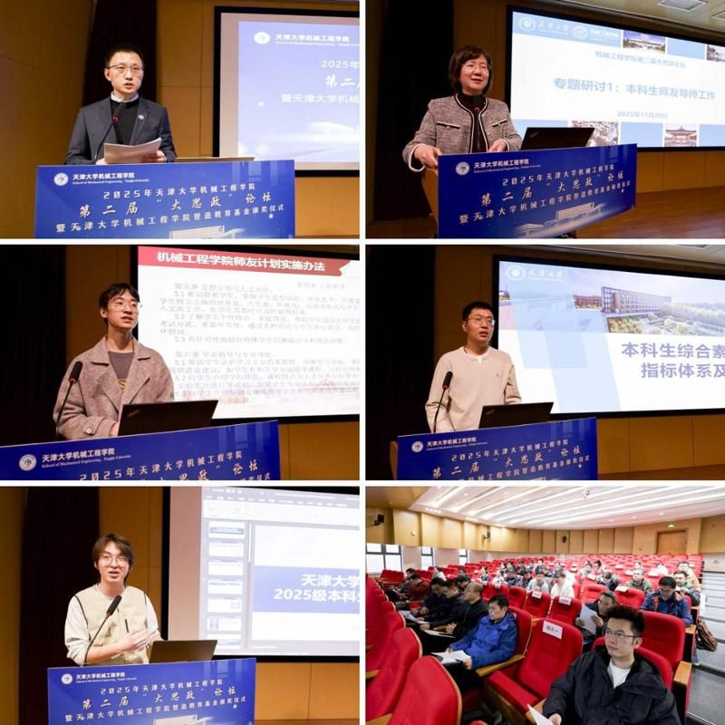 2025年11月28日下战书,机械工程学院正在北洋园校区37讲授楼宏远演讲厅举行第二届大思坛暨智制教育基金颁典礼。校党委杨贤金出席会议并讲话,首席员冯翠玲,校关工委副从任、机械工程学院关工委从任孙月海,党委教工部副部长王颖,以及学院党委孙涛、院长柯燎亮、副院长刘正先、副院长邓帅、关工委秘书长谭耕作出席勾当,取机械工程学院师友导师代表、学生代表200余人齐聚一堂,配合窗院思政育人工做的新取新景象形象。本次勾当由学院党委副林杰威掌管。