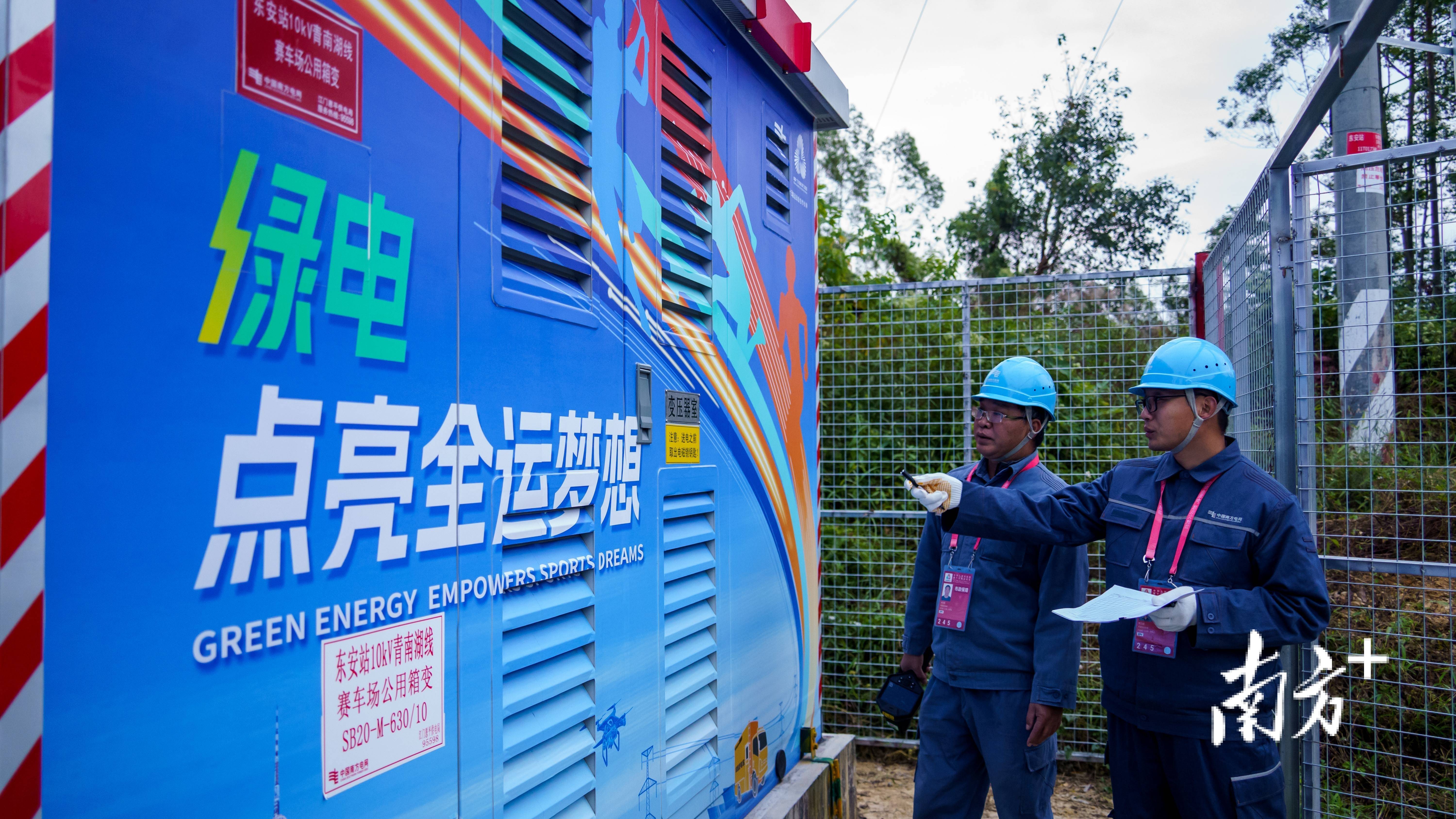 十五运会自行车(山地)角逐正在江门恩平举行,江门恩平手保供电人员对场馆供电设备开展查抄。郑芷晴摄 受访者 供图。